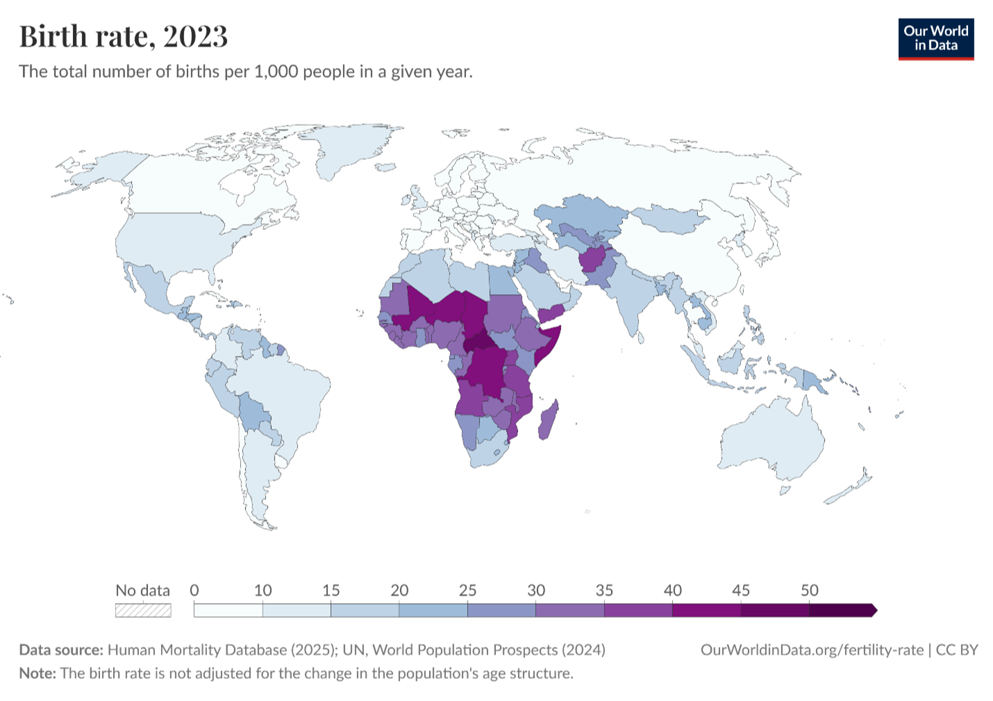 In many parts of Sub-Saharan Africa, population growth is driven by high birth rates combined with improving survival rates. More children surviving into adulthood is a good thing. But economic systems, infrastructure, education, and healthcare often struggle to keep pace.